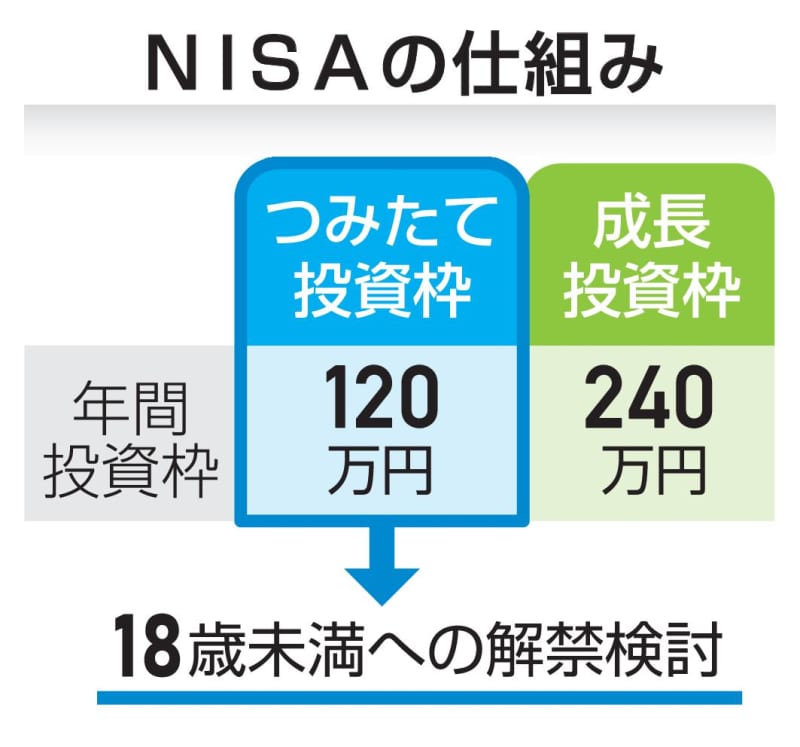 政府、与党が少額投資非課税制度(NISA)に関し、18歳未満の未成年が利用できるようにする方向で検討していることが1日、分かった。子育て世代の資産形成を支援するのが狙いだ。親が子ども名義で「つみたて投資枠」を使うことを想定し、制度設計を進める。0歳から利用できるようにする案も検討する。