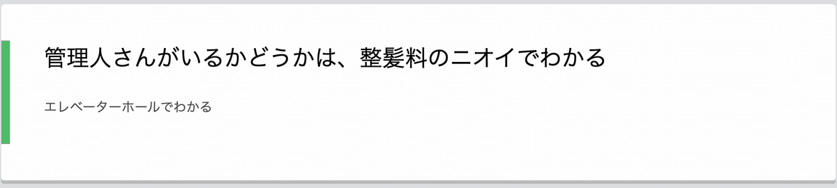 私が住んでるマンションの管理人さんが来てるかどうか、エレベーターホールに降りた瞬間にニオイで予想するゲームを勝手に朝やっている。だから何?という話でよいのだ。