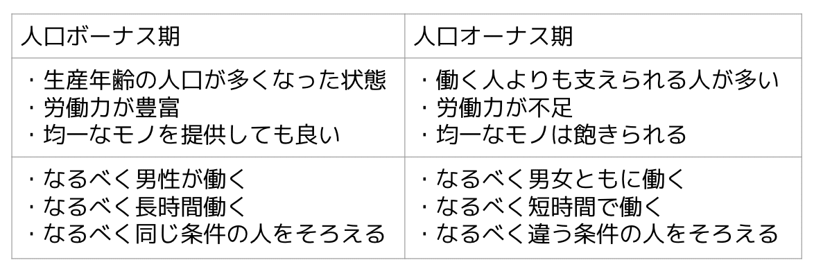 労働力が足りない人口オーナス期に経済発展しやすい働き方