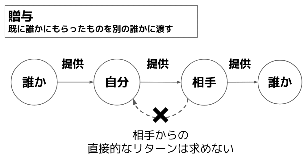 贈与は、自分の業務への見返りを求めない。みんなからいろいろ助けてもらっているから、自分もお返ししないと、というイメージでやっている。