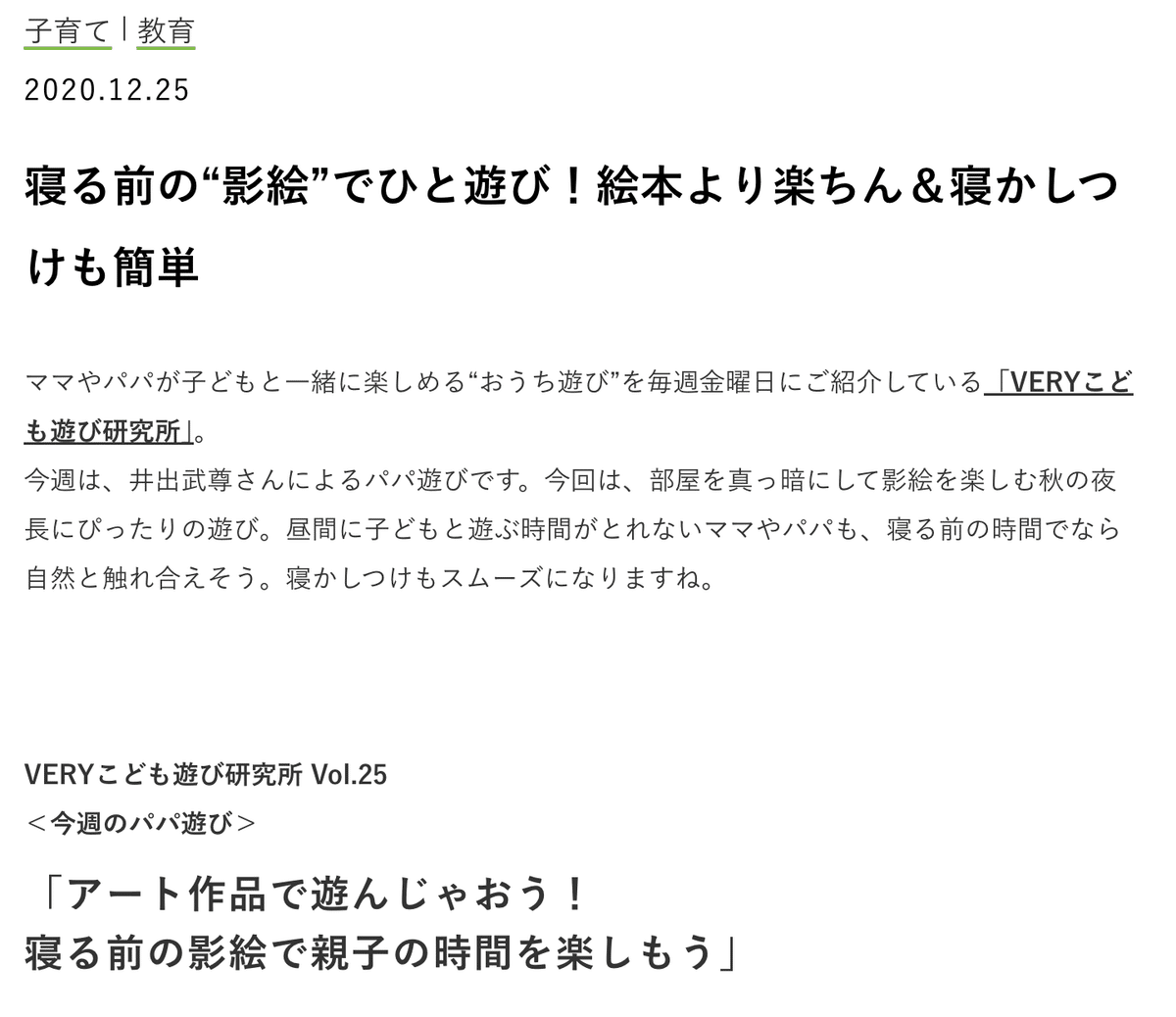 ↓VERYに掲載された「オリジナルの遊び(即座にクワクボリョウタの作品がリファレンスであると修正完了済)」