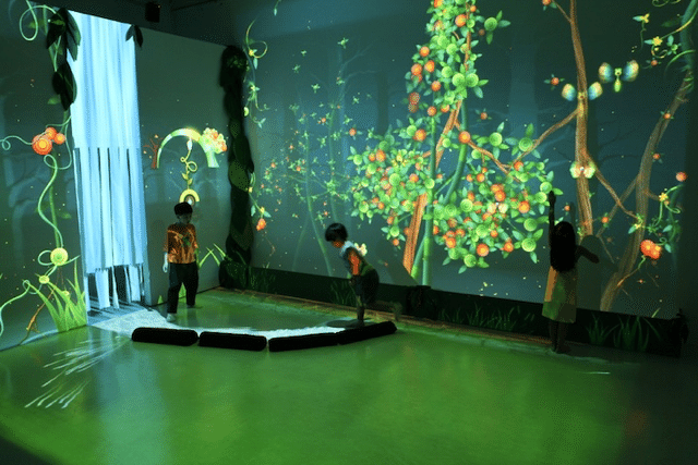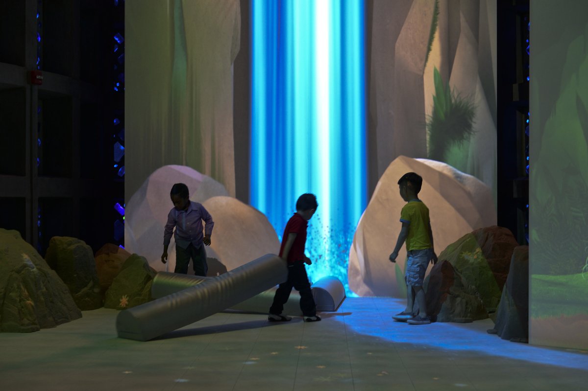 上記はEMILY GOBEILLE、THEODORE WATSON、NICK HARDEMANらのクリエイティブスタジオ「Design I/O」(アメリカ)が、2015年に発表した没入型大型インスタレーション"CONNECTED WORLDS"。
