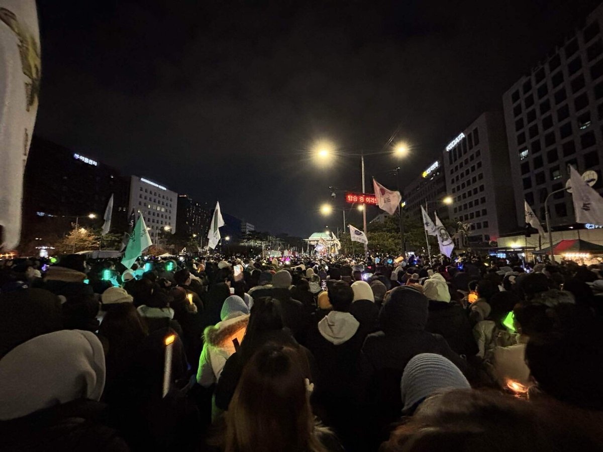 私自身も12月7日には、抗議デモの現場に居合わせたのだが、多くの人たちがペンライト、キャンドル、交通整理用の光るスティック、家の中にある一番明るい光を持ってその場に集まり国会前を目指して声を上げながら行進をし続けていた。