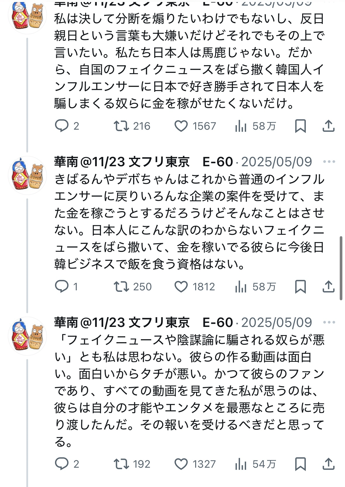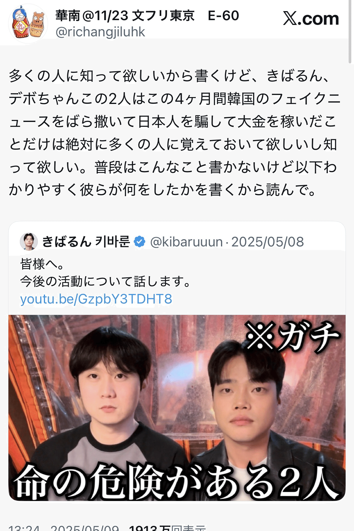 結果的に私は、デボちゃんときばるんがフェイクニュースをばら撒いてるという事実でネットの空間で波を起こすことができたが、多くの人にはデボちゃんやきばるんが流しまくったフェイクニュースが本当なのか、それとも私や多くの日韓関係者が言ってることが本当なのかを判断できなかった。