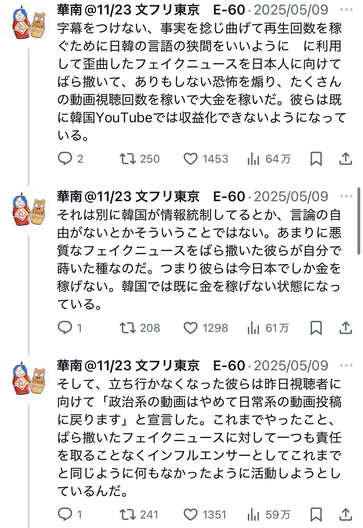 しまいには、韓国でも人気の声優である林原めぐみのような有名で影響力のある人まで彼らのばら撒くフェイクニュースを信じて発信してしまう始末。