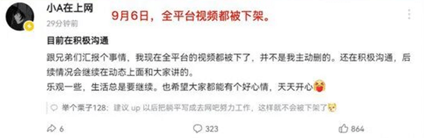 今年の8月から9月にかけて、多くの寝そべり族系のアカウントが凍結されました。本稿では、その代表の一例として「小A在上网」を取り上げます。