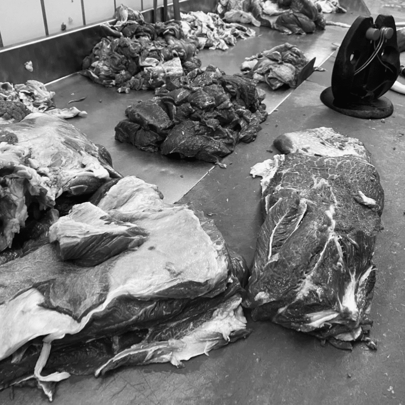 作業場はとにかくうるさい 骨を断つ用の電動のこぎり機は歯医者の嫌な音のボリュームMAXだし、肉を脂や調味料とよく混ぜ合わせる為のカッターはもはや高架下の騒音レベル