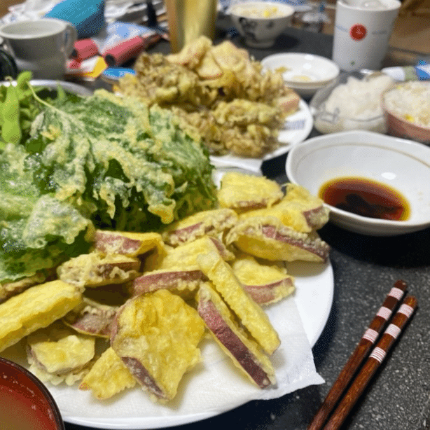 私たちは普段食べないような野菜をたくさん買い込み、私の肉屋で買った薄切りの豚肩肉を並べて鍋を囲み一緒に食べた