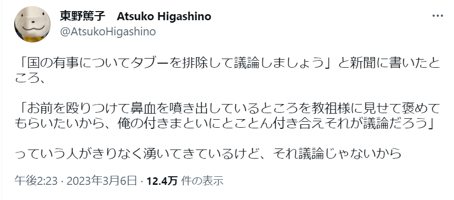 — 東野篤子 Atsuko Higashino (@AtsukoHigashino) March 3, 2023