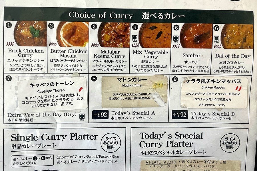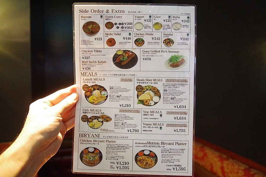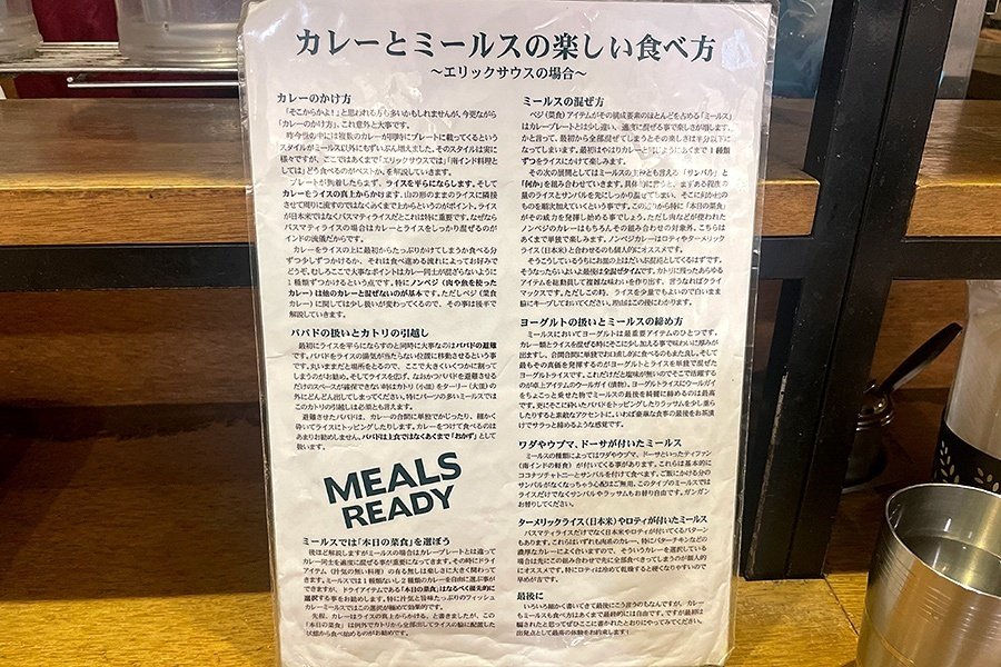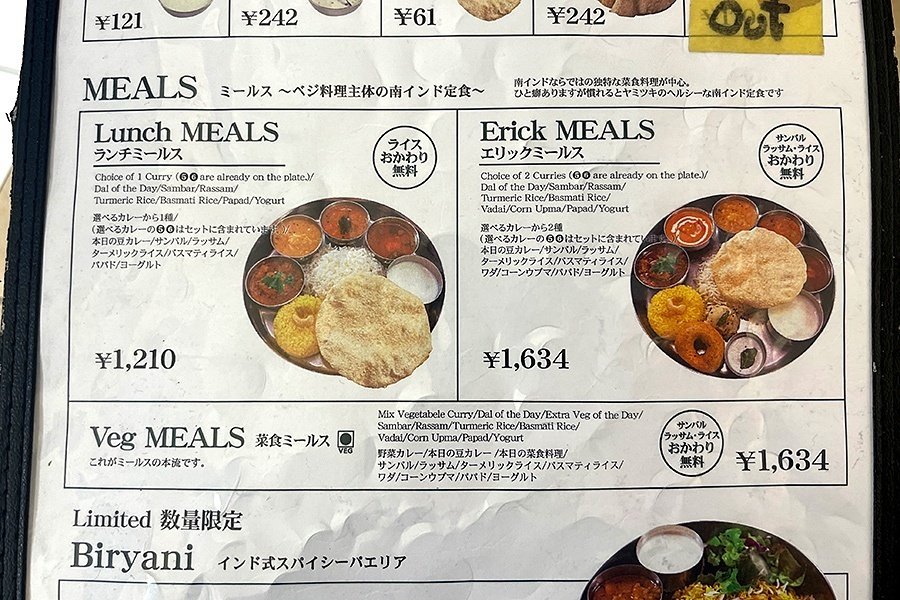 「最初はどうしてもチキンカレーとかキーマカレーが欲しくなります。でもそこから離れて、最終的にはベジミールスをゴールにしてほしい。そこの思想が強烈にあります。もちろん無理強いはしませんけれど、裏面のメニューなどをよく読むと、ミールスはもうベジで統一するべきなんだなという誘導というか遠隔操作になっています」