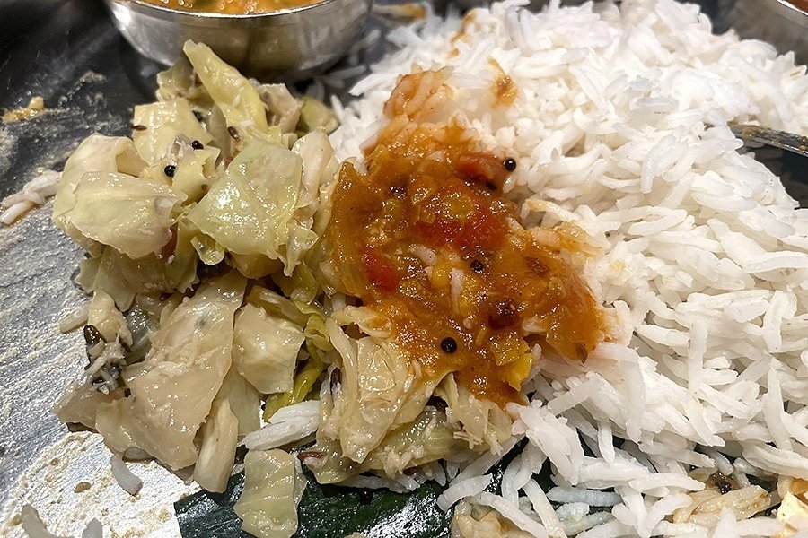 ノンベジのカレーとターメリックライスとパパドとだけがなくなって、バスマティライスもサンバルもラッサムもほとんど残されているみたいなことが続出しました」