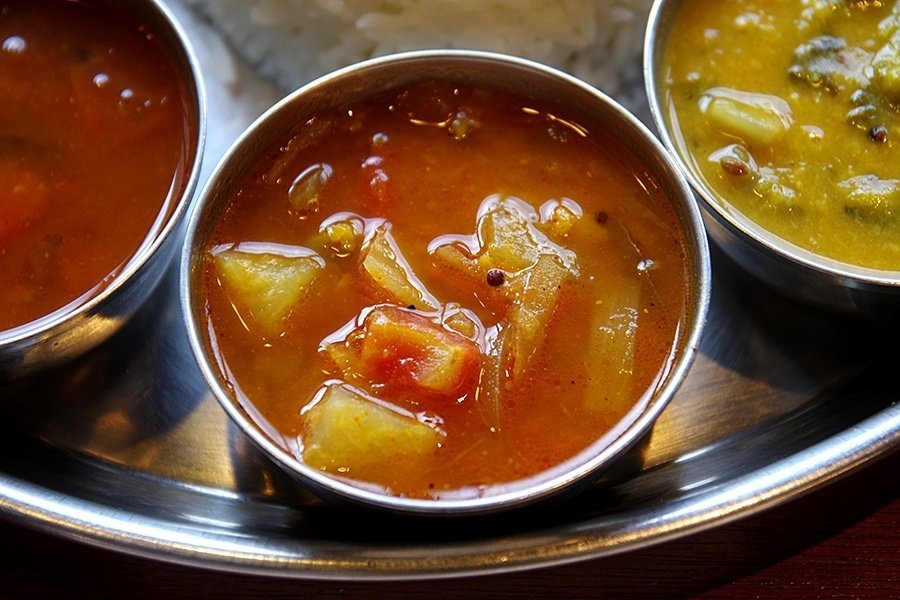 「これはなかなか難しい問題ですね。何をもって美味しいサンバとするかなんですけれど、自分の中では1つ結論が出ていて、 ミールスの中心であるサンバルに関しては、カレー好きの人も南インド料理好きの人も、どっちも納得するものでなければいけない。