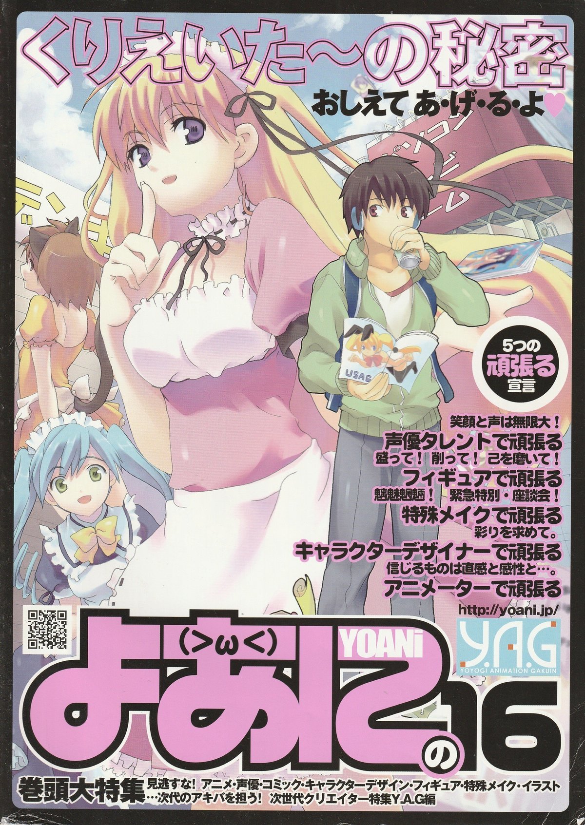 さらに、裏表紙から反対側に読むかたちで、「よあにの16」という代々木アニメーション学院の広告特集が掲載されている。代アニ在籍のクリエイターの卵14名へのインタビューで構成されており、声優の松井恵理子のデビュー前の姿が見られたりする。「若人はフレッシュでええのう」と公園のジジイのような気分になれる読み物。