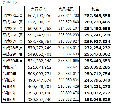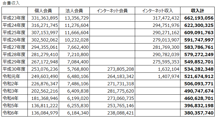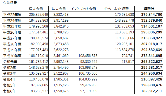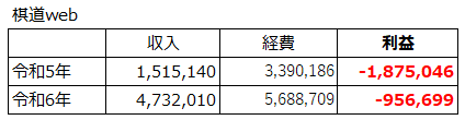 特に令和5年の減少幅を見ると、週刊碁会員の収入もこの中に入ってたのかな?、そして一般会員への移行に大失敗したのかな?