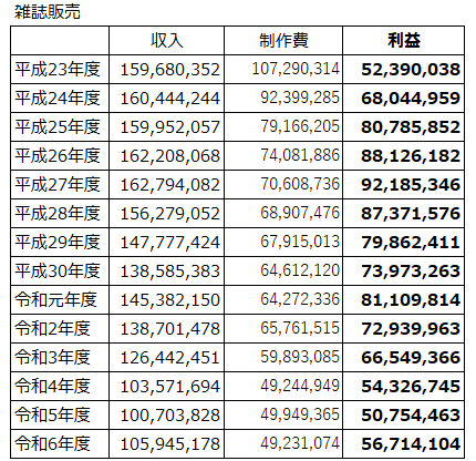雑誌ブームの90年代は稼げたのぅ、という昔話もしたくなりますが、ネットで簡単に出せる決算は21世紀物だけなので現実を直視しましょう。