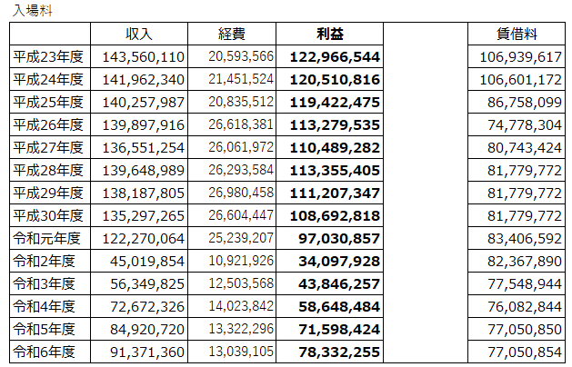 囲碁サロンでは指導碁なども行われていますが、指導関連は他の事業と混ぜられてるので、ここでは入場料の項目のみで見ます。