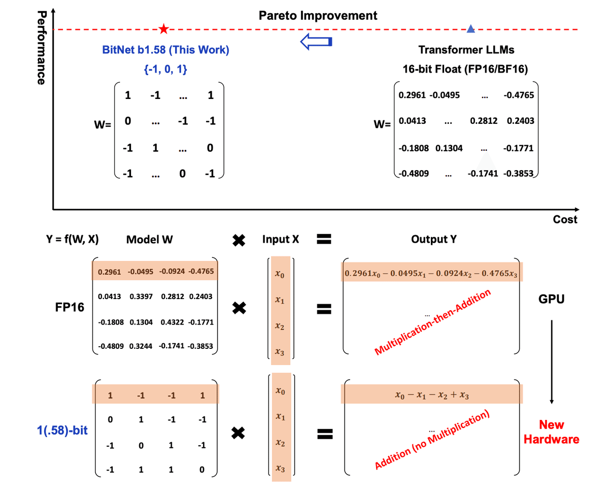 BitNetというのは、1ビット(-1,0,1の三状態を持つ)まで情報を削ぎ落とすことで高速に推論するというアルゴリズム。だから正確には0か1かではなく、-1か0か1ということ。