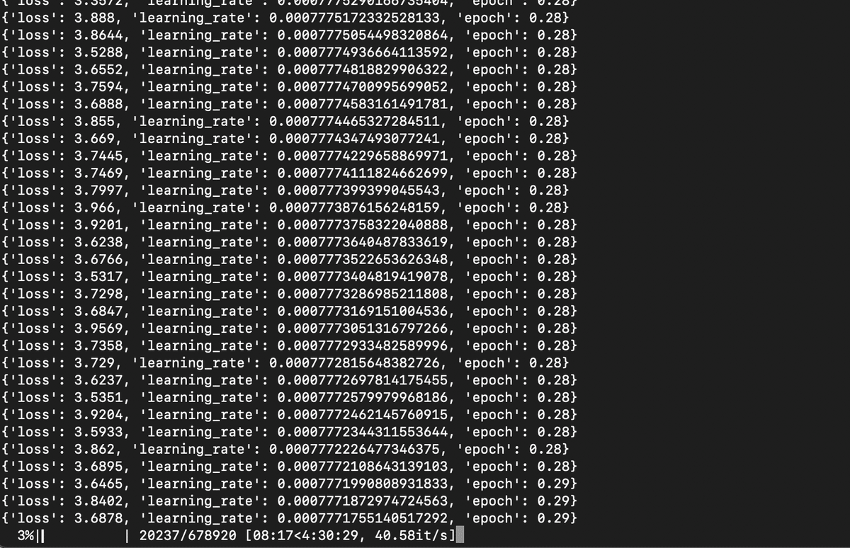 それでも信じられない俺は、ひとまずwikitextを学習させるサンプルを走らせてみた。