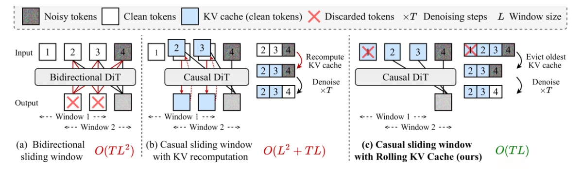 まとめると、「自己回帰アーキテクチャ」が計算量を劇的に減らし、「Self-Forcing」という学習法がその高速な生成プロセスを安定させている。この2つの組み合わせが、リアルタイムでの推論を可能にしています。
