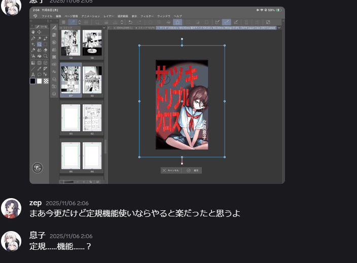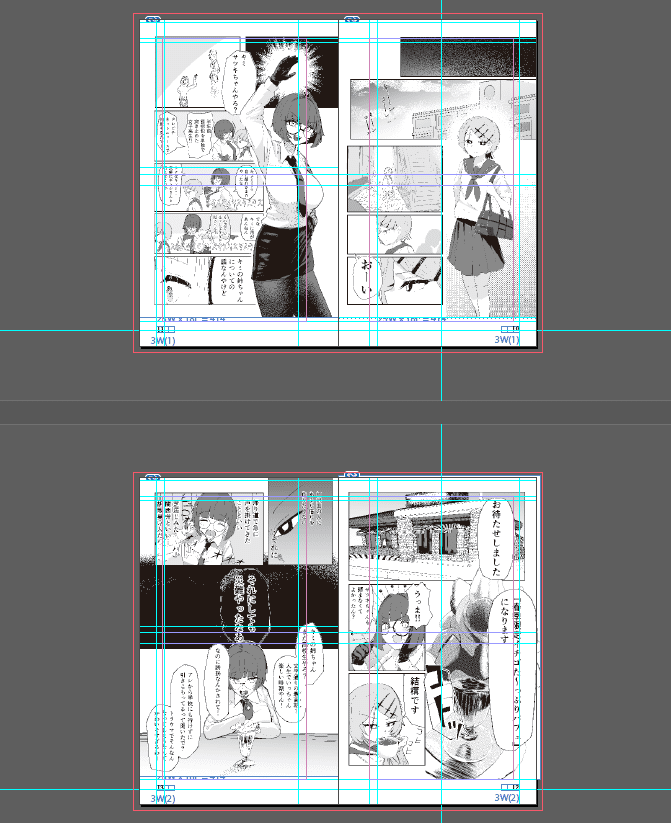 みたいなことを本人は言っていたが、それを流し込みながら逐一チェックしていたのはこちらである。一応不自然にならないように配置し、本全体を通すページ番号を振って形にはしたが、テンプレートを早々にガン無視する必要が出たため、セリフがノド(本の中央)に行き過ぎないかとにかく不安だった。