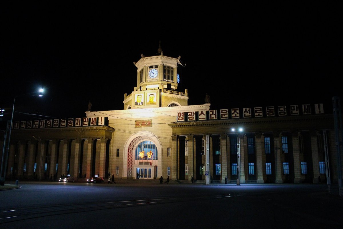 ホテルに到着しチェックインをしたあと、ガイドが夜の平壌駅前に連れて行ってくれた。