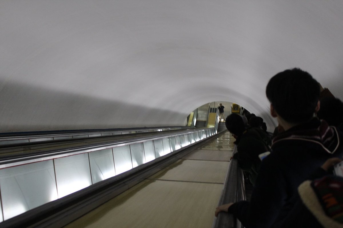 地下鉄のホームに降りるエスカレータは気が遠くなるほど長かった。高低差は60~70m程度、長さは100~110m程度あるらしい。長すぎてエスカレータの段差に座っている人すらいた。