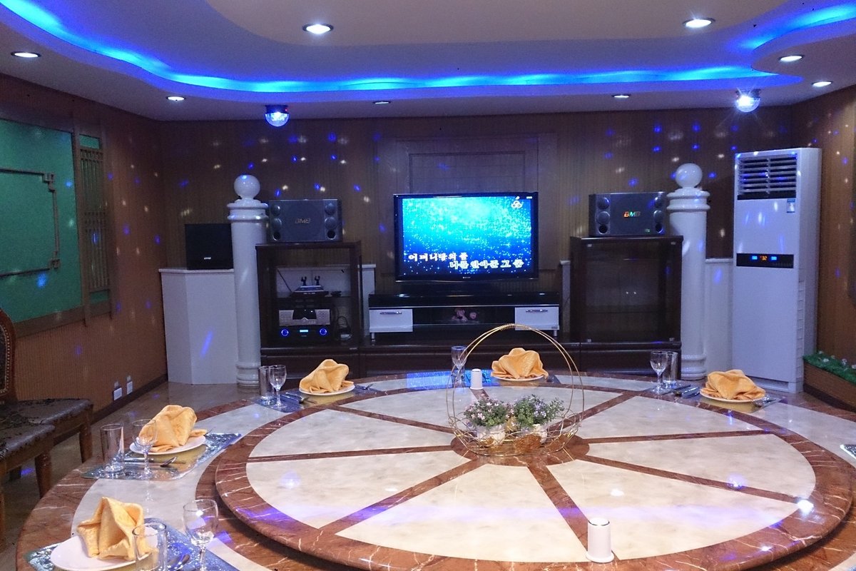 北朝鮮最後の夜を迎えた。私は鉄道マニアであるが、北朝鮮音楽のマニアでもある。北朝鮮でもカラオケができると聞いて、必ず行きたいと思っていた。メンバーに声をかけたところ、ほぼ全員大学生ぐらいの7人が集まった。