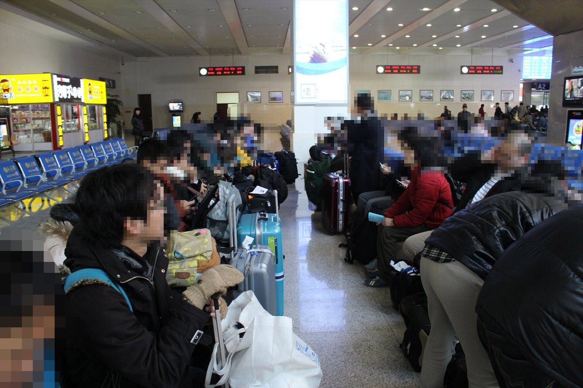 翌朝、丹東駅で参加者34人全員がそろった。その光景はまるで修学旅行の朝の集合のようだった。わざわざ旅行代理店の社長が直接あいさつに来てくれ、平壌行きの列車のチケットを手渡してくれた。