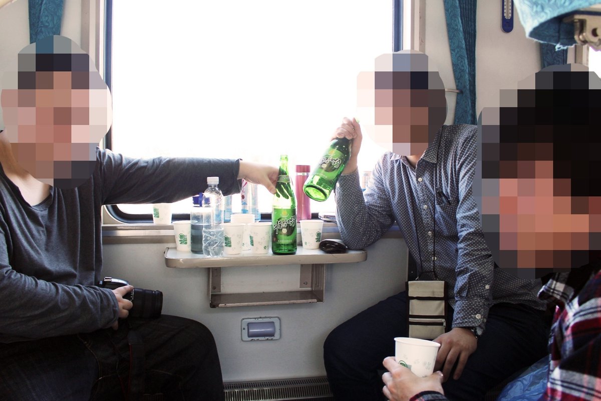 はたしてこの先ちゃんと平壌までたどり着けるのだろうか、私は気が気でなかった。だが、私の不安をよそに、メンバーは昼間からビールを飲んで談笑し始めていた。twitterで集まった見ず知らずの34人は、あっという間に仲良くなっていった。