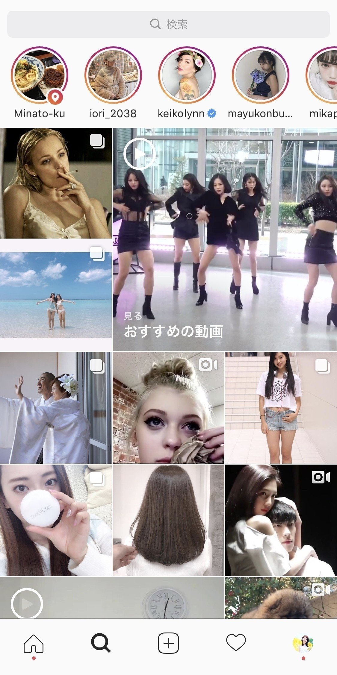 レコメンド機能の代表例は、これまたInstagramのエクスプローラータブ(検索マークのタブ)に表示される画像たちです。これらは、自分が「いいね!」をした投稿に関連するものや、自分がフォローをしている人たちに関連するものが表示されるそうなのですが、このページが、とにかくもう便利で面白くて、楽に興味のある情報を集めることができるのです。
