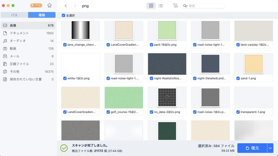 æå¾ã«ãæ¤åºããããã¡ã¤ã«ã®ä¸ã«å¾©å ããããã¡ã¤ã«ããã§ãã¯å ¥ãã¦ãä»ãã復å ãã¿ã³ãæ¼ããã¨ã§ãå®è¡ã