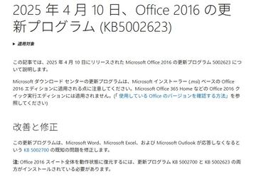Windows 10だけでなく、Office 2016/2019もサポート終わってます