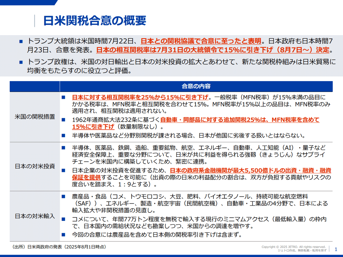 自動車・自動車部品の関税引き下げ半導体・医薬品分野で他国に劣後しない扱い