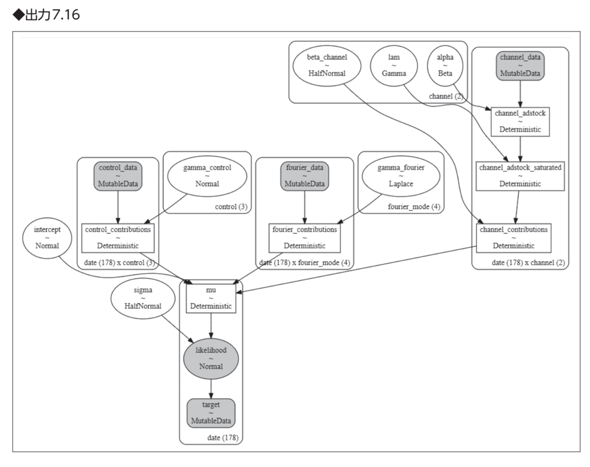 ããã¯åã¯åè¦ã ã£ãã®ã§ãããPyMC Marketingã ã¨MMMã®DAGãã°ã©ãã£ã«ã«ã«è¡¨ç¤ºã§ãããã§ãããæ¥ããããªããå