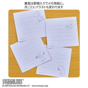 さらに、ダイニングテーブルや仕事デスク立てられる簡易スタンドが付属。季節や祝日、イベントなどに応じてスヌーピーと仲間たちが日々めくるたびに登場し、2026年のお出かけスケジュールを立てるのも楽しくなりそうだ。