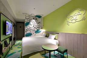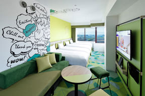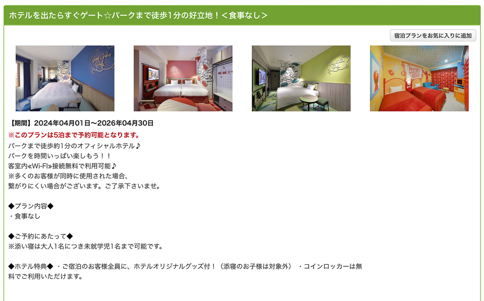 宿泊者特典として、パークの人気者をデザインしたコラボグッズが付くほか、コインロッカーは利用無料で、チェックイン前/チェックアウト後の荷物預かりサービスも使える。