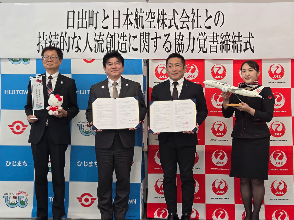 大分県日出町(ひじまち)と日本航空は、8月21日に「持続的な人流創造に関する協力覚書」を締結いたしました。