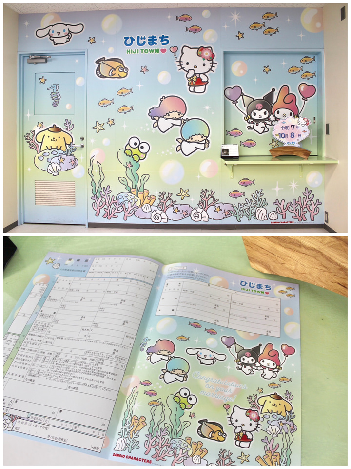 また、日出町は「ハローキティとくらすまち ひじ」のキャッチフレーズのもと、ハローキティが暮らしのなかにより身近に感じられるよう、さまざまな取り組みを行なっています。