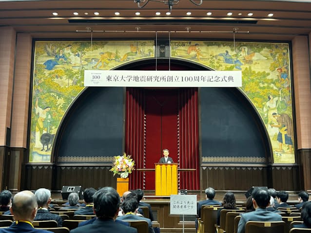 東京大学地震研究所(東京・文京)の創立100周年を記念する式典が12日、東大の安田講堂で開かれた。同研究所の教職員や卒業生らが出席した。地震の規模を示す数式など、これまで生んできた成果と研究の歩みを振り返り、節目を祝った。